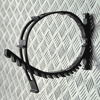 Gumowy uchwyt umożliwiający zamocowanie przedmiotu o średnicy 65 mm - 240 mm. Idealny do przytrzymania wszelkiego rodzaju zbiorników np. gaśnicy, butli tlenowej itp. Uchwyt utrzymuje bezpiecznie do 23 kg. Mocowany jest przy pomocy trzech śrub lub wkrętów. Pasek zapinający składa się z trzech odcinków, nadmiarowe można odciąć.