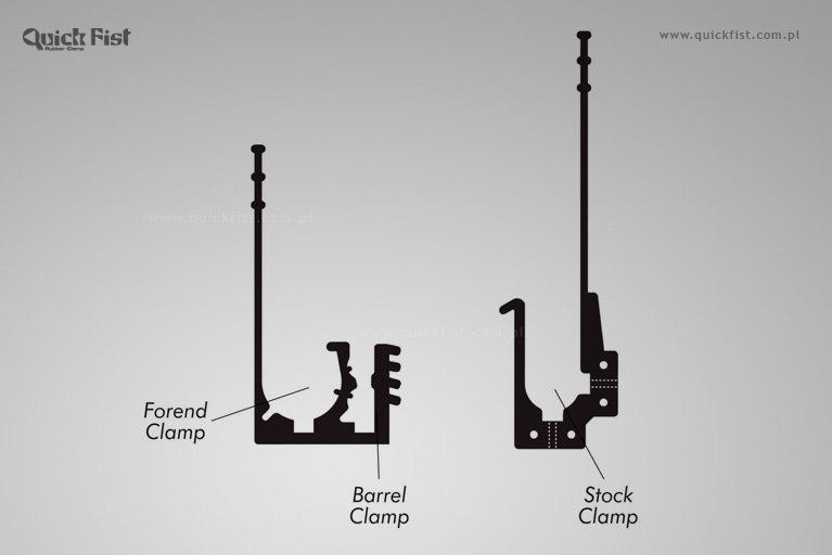 Zestaw dwóch uniwersalnych gumowych uchwytów służących do bezpiecznego zamontowania broni w pozycji pionowej lub poziomej.